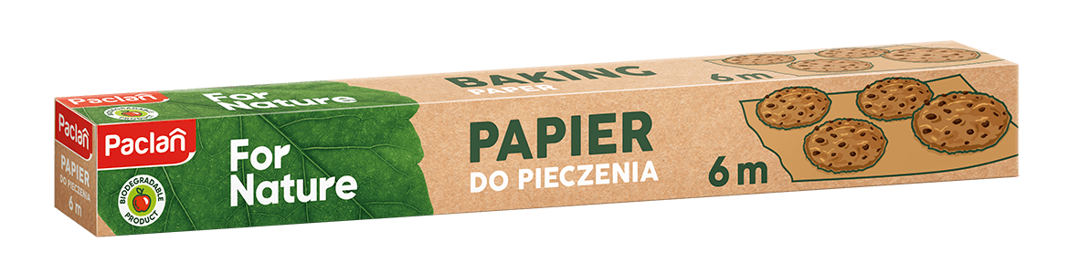 Papier do pieczenia z linii Paclan For Nature to obowiązkowy produkt dla miłośników słodkich i wytrawnych wypieków. Dzięki obustronnemu silikonowaniu biszkopty, kruche ciasta czy tarty nie przywrą do powierzchni blaszki i będzie można je swobodnie podać. Produkt w formie rolki jest wygodny w użytkowaniu i pozwala na dopasowanie do wielkości formy – keksówki, tortownicy czy prostokątnej blaszki.